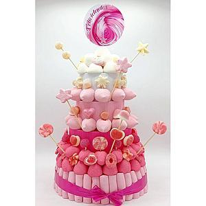Tarta Chuches Plana Grande Rosa-Blanco