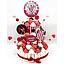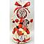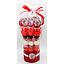 Cubo redondo con 12 brochetas fabricadas exclusivamente con golosinas y nubes.