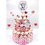 Cubo redondo con 12 brochetas fabricadas exclusivamente con golosinas y nubes.