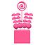 Cubo redondo con 12 brochetas fabricadas exclusivamente con golosinas y nubes.