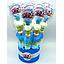 Cubo redondo con 12 brochetas fabricadas exclusivamente con golosinas y nubes.