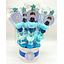 Cubo redondo con 20 brochetas fabricadas exclusivamente con golosinas y nubes.