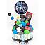 Tarta tamaño extra grande, distribuida en pisos y fabricada exclusivamente con golosinas y nubes.
