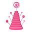 Tarta tamaño grande, distribuida en pisos y fabricada exclusivamente con golosinas y nubes.