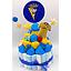 Tarta tamaño grande, distribuida en pisos y fabricada exclusivamente con golosinas y nubes.