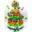 Tarta tamaño grande, distribuida en pisos y fabricada exclusivamente con golosinas y nubes.