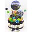 Tarta tamaño grande, distribuida en pisos y fabricada exclusivamente con golosinas y nubes.