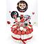 Tarta tamaño grande, distribuida en pisos y fabricada exclusivamente con golosinas y nubes.