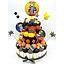 Tarta tamaño mediano, distribuida en pisos y fabricada exclusivamente con golosinas y nubes.