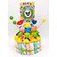 Tarta tamaño mediano, distribuida en pisos y fabricada exclusivamente con golosinas y nubes.