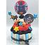 Tarta tamaño mediano, distribuida en pisos y fabricada exclusivamente con golosinas y nubes.