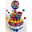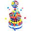 Tarta tamaño pequeño, distribuida en pisos y fabricada exclusivamente con golosinas y nubes.